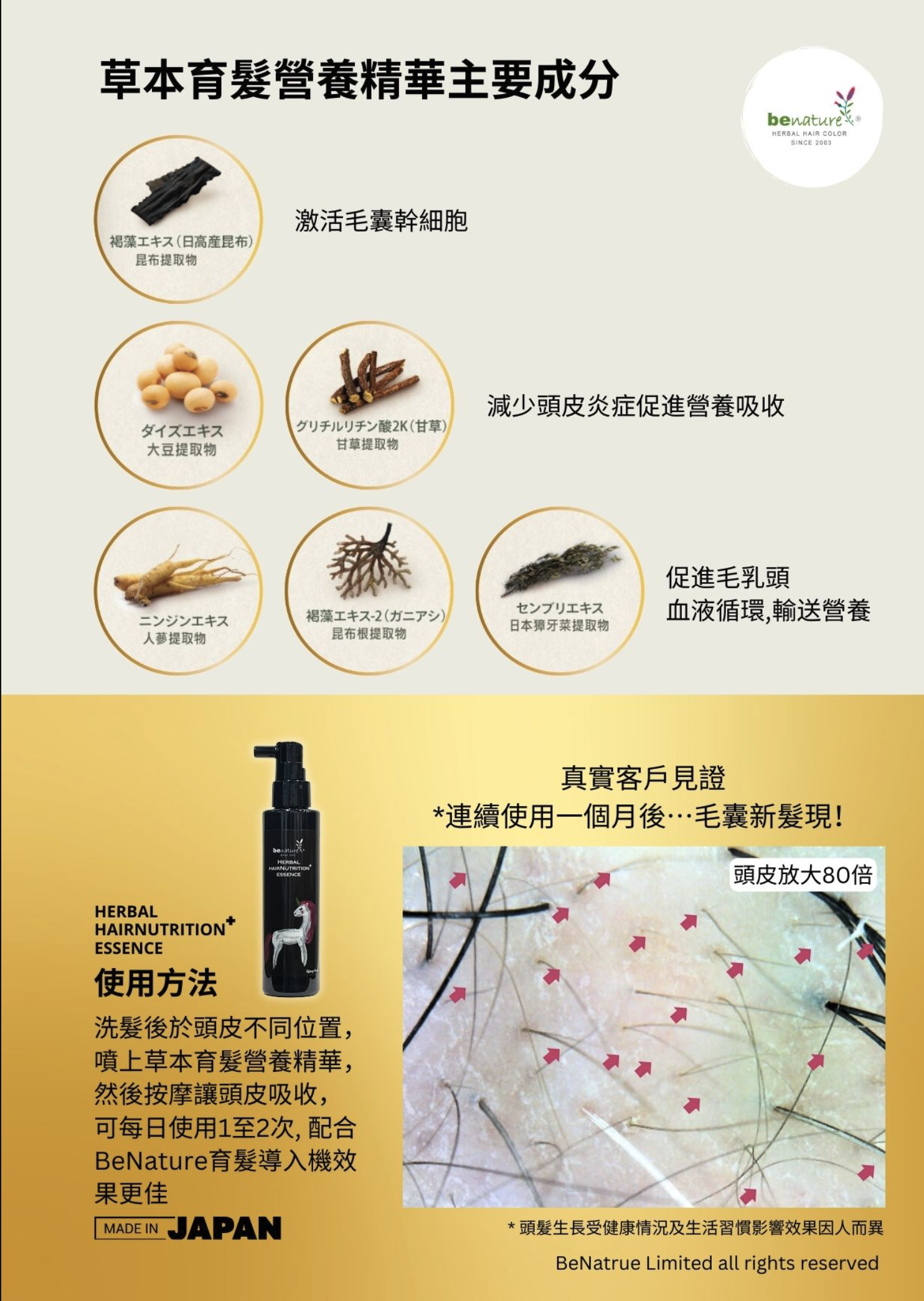 BeNature 草本育髮營養精華 專業級育髮精華 – 強韌髮根,重現濃密秀髮!