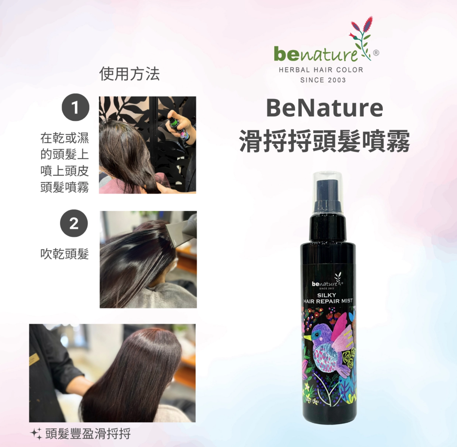 💡 使用方法 1️⃣ 洗髮後,將噴霧均勻噴於半乾或乾燥髮絲上,避免噴於頭皮。